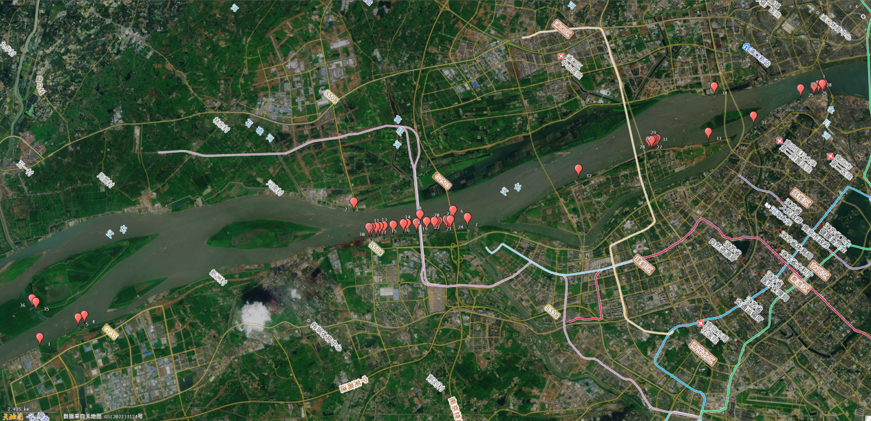 2024年3月7日—8日,南京长江江豚省级自然保护区利用专业无人机开展保护区水域疑似人类活动点位巡查。共巡查39个点位,其中桥类点位2个(大胜关长江大桥、京沪高铁桥);岸边广场类点位1个(扬子江国际会议中心岸边广场江豚观测平台);道路类点位1个(新济洲连接再生洲道路);码头类点位34个;趸船类点位1个(在建4号线趸船)。