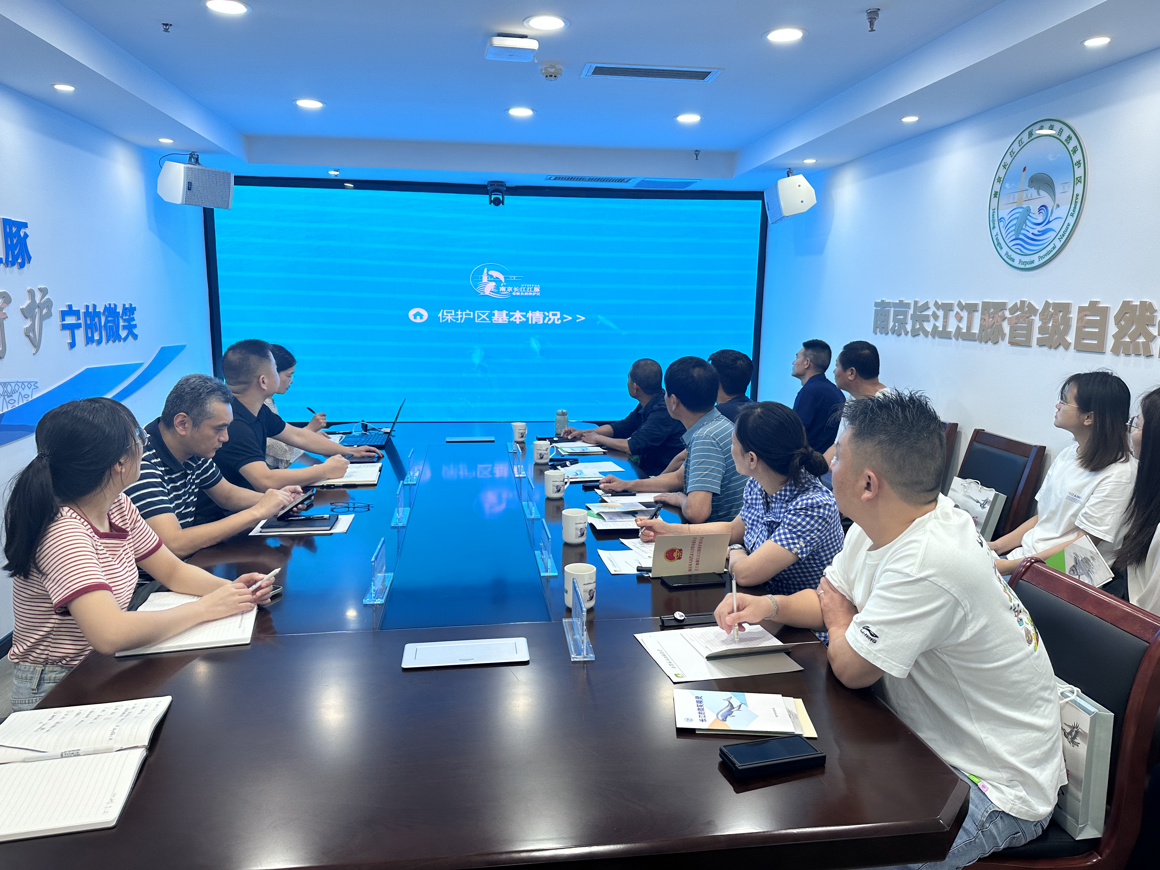 2023年9月5日,湖北长江新螺段白鱀豚国家级自然保护区管理处刘小宇书记一行11人,莅临南京长江江豚省级自然保护区考察交流。考察团参观了南京长江江豚监测站,听取了南京江豚保护区的工作汇报,并就长江江豚物种保护、保护区信息化建设、社区共建和科普宣教工作进一步交流讨论,高度评价保护区的信息化建设和社会面公益科普宣传等建设管理工作。