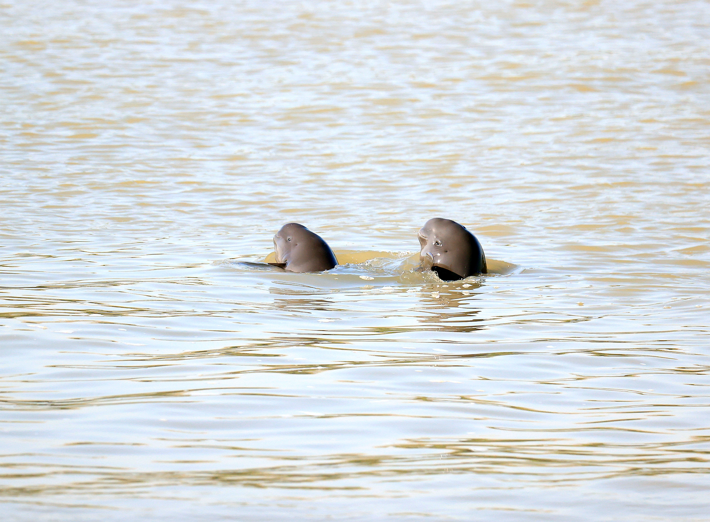 吐水是长江江豚的“绝招”之一。吐水时,它们会先喝一口水,随即嘴巴一合,吐出一道漂亮的水柱。有时候调皮的长江江豚还会张开嘴巴,把吐出去的水再接住,重复多个回合,不亦乐乎。