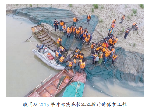 目前,迁地保护的江豚群体数量超过100头,每年有10头左右的幼豚出生,长江江豚迁地保护工作已初见成效。尤其是湖北石首天鹅洲长江故道建立的长江豚类保护区,成为世界上第一个成功开展鲸类动物迁地保护,并具有重要国际声誉的水生哺乳动物示范保护区。在2015年11月捕捞起水进行体检的59头江豚中,有9头怀孕,11头哺乳(其中4头同时妊娠),说明天鹅洲保护区的江豚种群,已进入高速增长阶段,这是长江江豚迁地保护的重大进展。